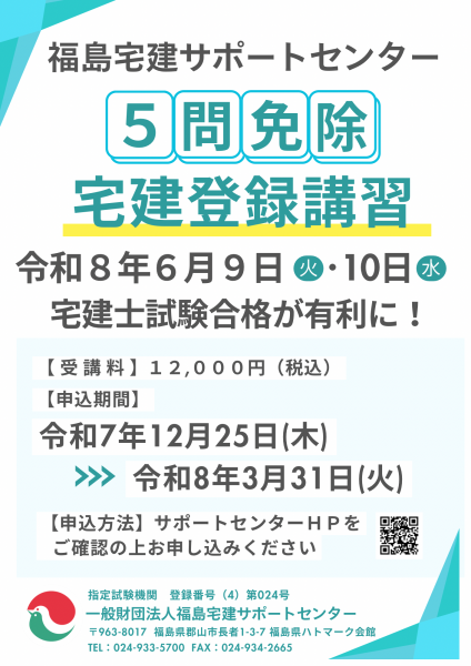 令和8年 登録講習(5問免除)のお知らせ